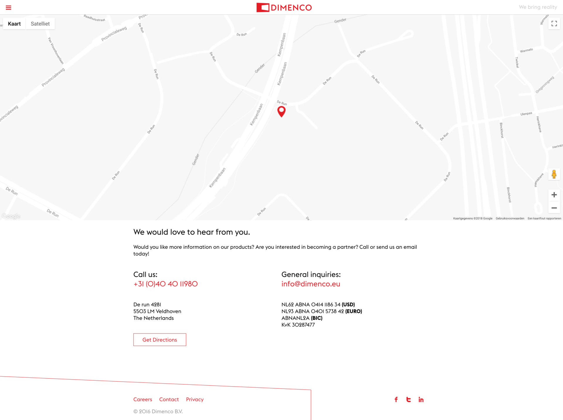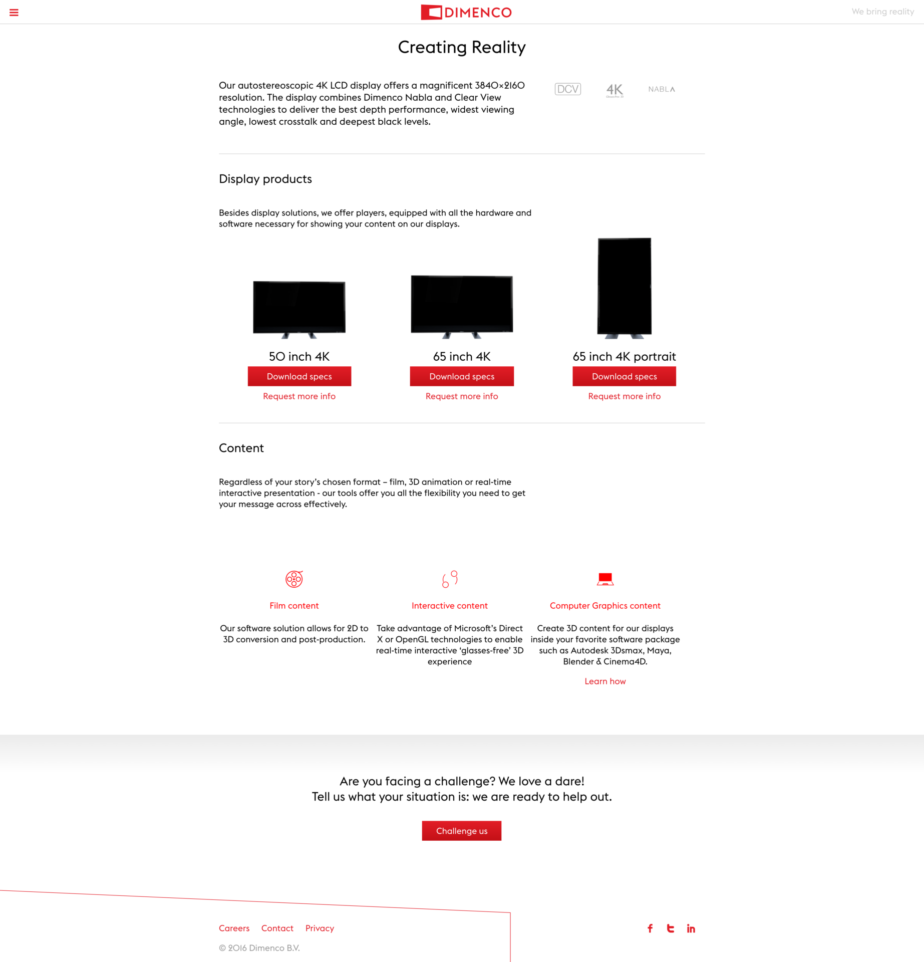 Tijdens mijn werk als UX Designer bij AuguSoft heb ik veel projecten mogen doen en heb ik erg veel leuke websites in elkaar kunnen zetten. De website voor Dimenco was een van die websites waarbij ik heb kunnen genieten van goed design met genoeg uitdaging. Deze website hebben wij vanaf scratch op mogen zetten waarbij ik de Front-End ontwikkeling heb gedaan.